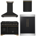 FORNO Espresso Package - 48" Gas Range, Range Hood, 60" Refrigerator, Dishwasher in Black with Antique Brass Accents