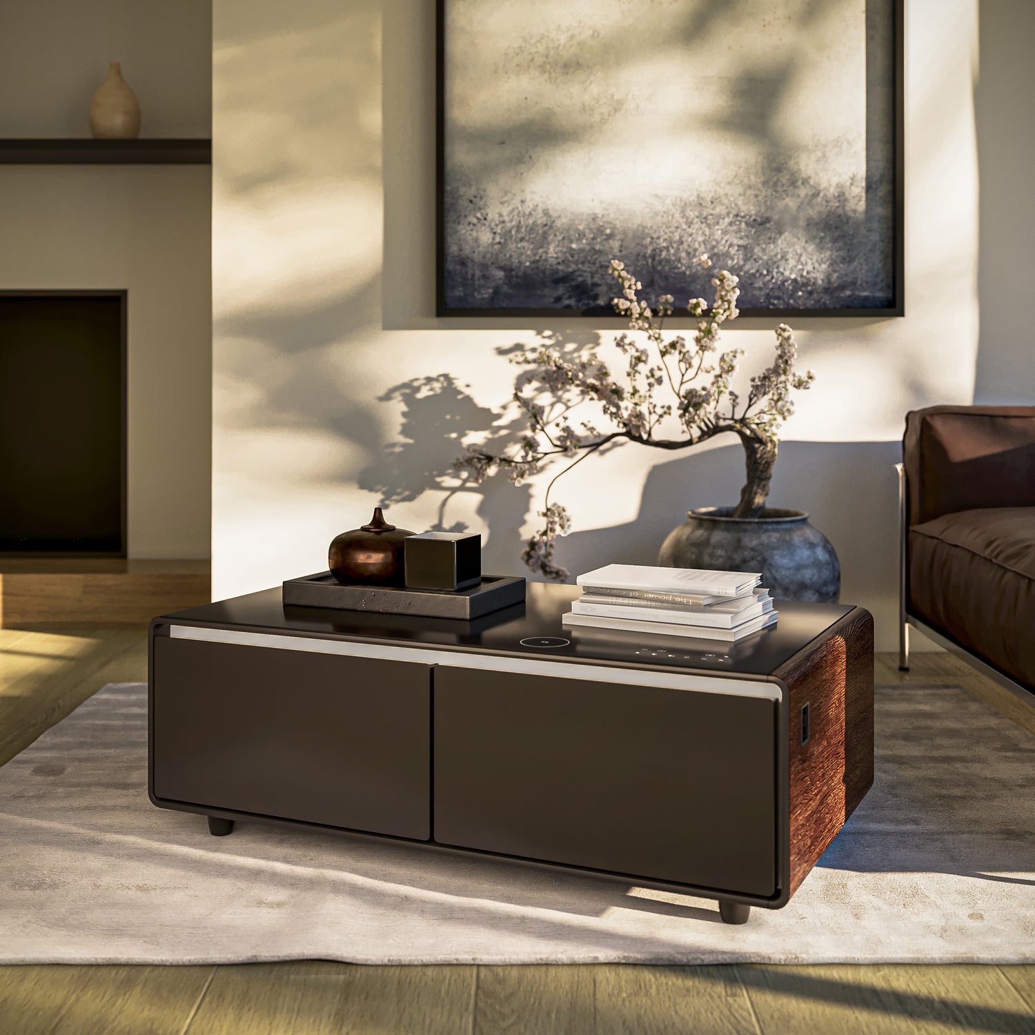 • Touch Control Panel: Seamlessly manage audio, lighting, and temperature from the tabletop.