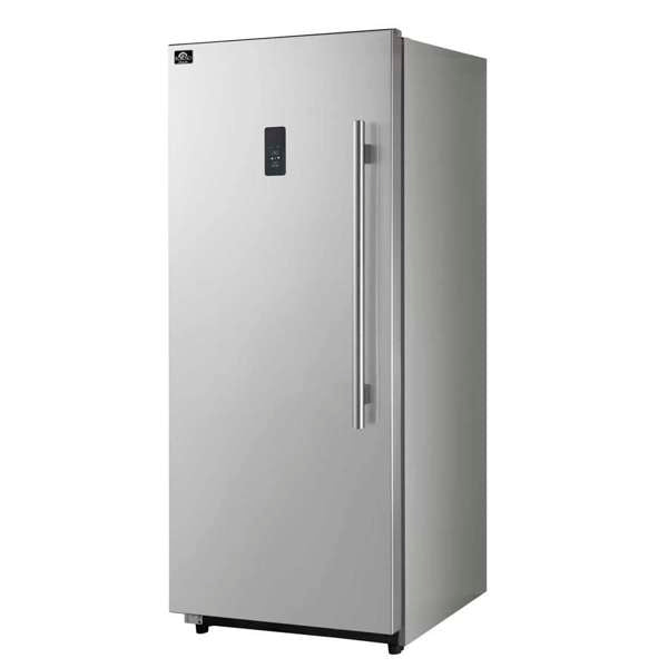 The Forno Fortezza 28 Inch Left-Swing Freezer has Total No Frost cooling and an Energy Star certification, keeping interior temperatures steady without manual defrosting. Inside, you'll find adjustable shelving, door storage, and a galvanized steel-coated interior for long-lasting performance. The digital control panel offers precise temperature settings from -24°C to -14°C, while the Fast Freeze function locks in freshness quickly. An automatic filtered ice maker delivers crescent-shaped cubes on demand.