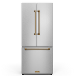 Gordon Ramsay by THOR Kitchen 30" 17.5 cu. ft. French Door Counter Depth Refrigerator with Ice Maker in Stainless Steel with Bronze Accents, RF3017FFD99-BRZ