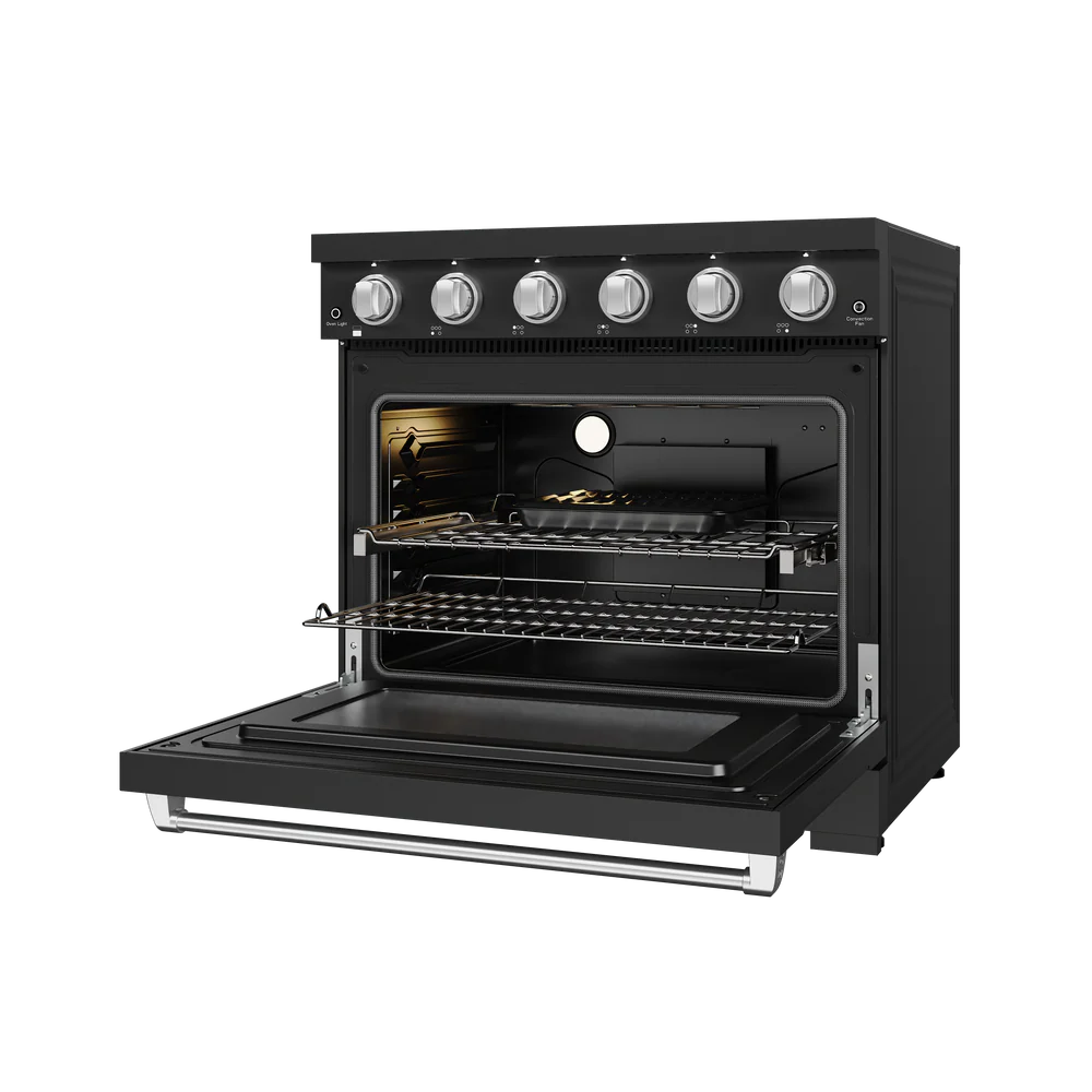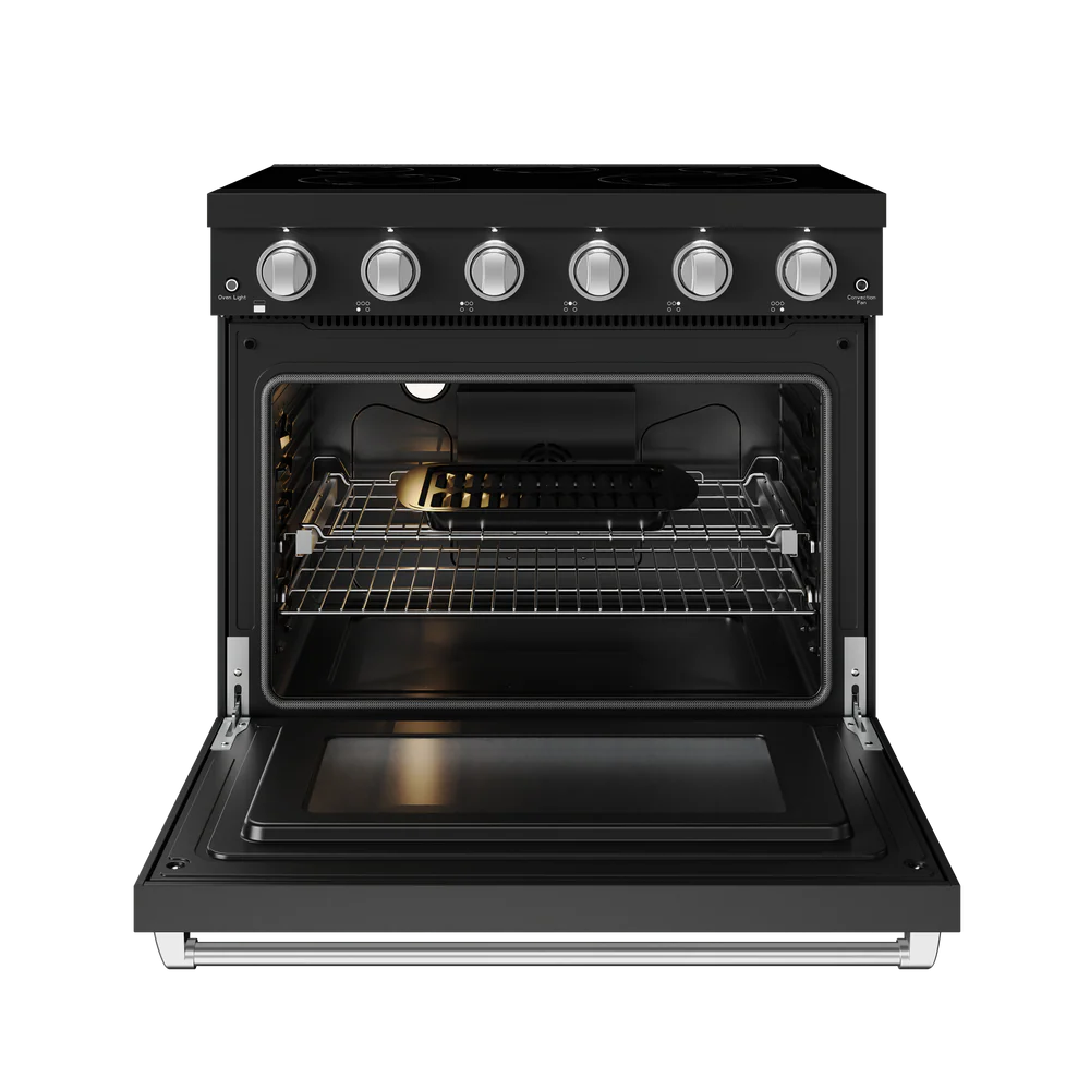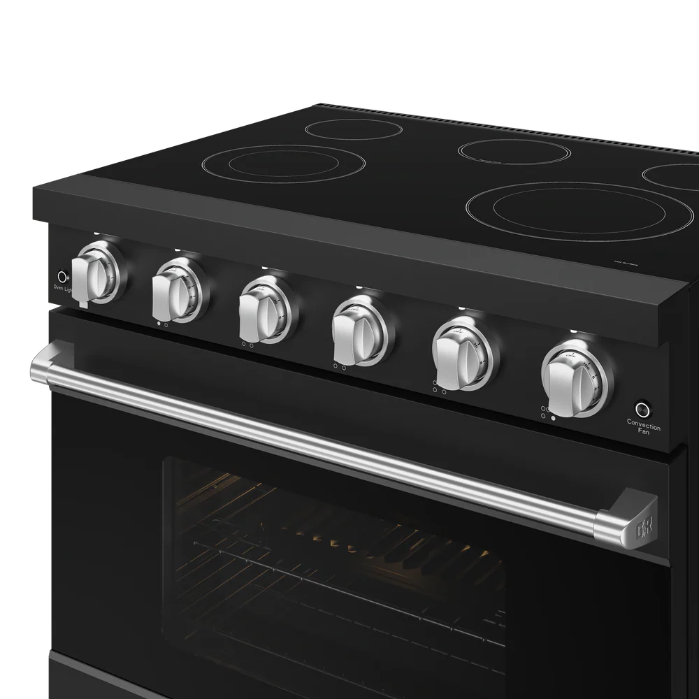 Gordon Ramsay by THOR Kitchen 36" 6 cu. ft. Professional Electric Range with 5 Burners in Black with Stainless Steel Accents, RSE36PB-SS