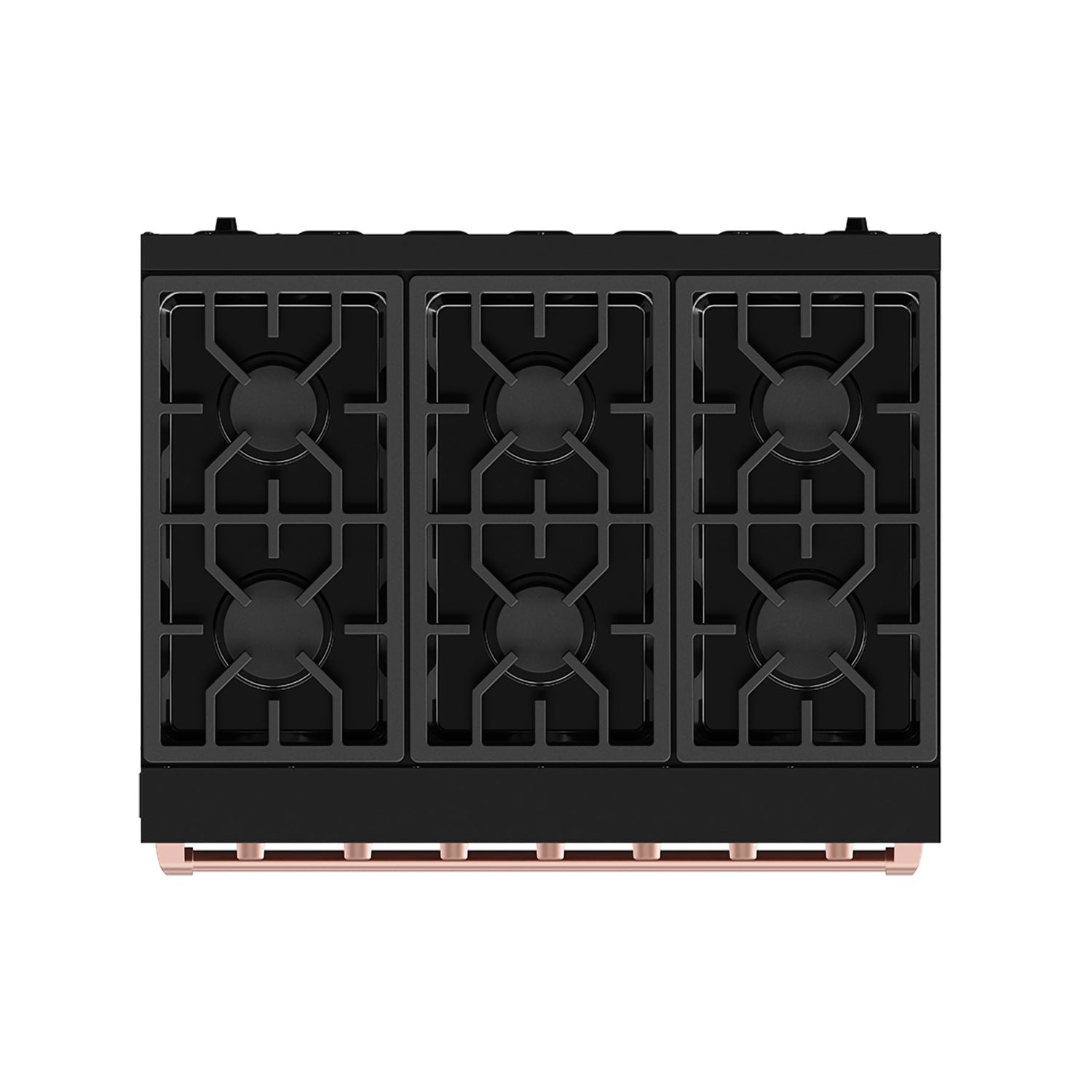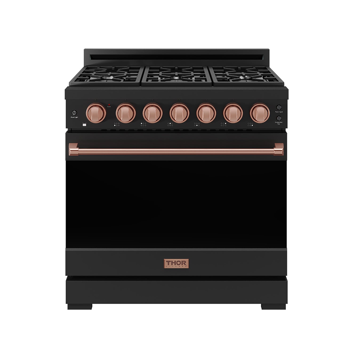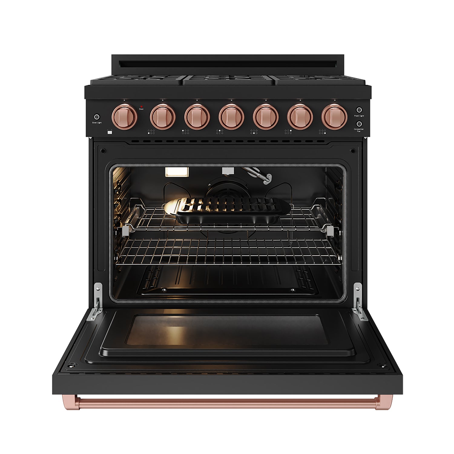 Gordon Ramsay by THOR Kitchen 36" 6 cu. ft. Professional Propane Gas Range with 6 Sealed Burners in Black with Rose Gold Accents, RSG36PBLP-RSG