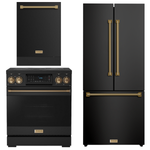 Gordon Ramsay by THOR Kitchen Package - 30" Electric Range, 30" Refrigerator with Ice Maker and Dishwasher in Black Matte with Bronze Accents, AP-RSE30B-BRZ-1
