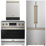 Gordon Ramsay by THOR Kitchen Package - 36" Electric Range, 30" Refrigerator with Ice Maker and Dishwasher in Stainless Steel with Bronze Accents, AP-RSE36-BRZ-1