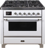 ILVE Majestic II 36" Dual Fuel Natural Gas Range in White with Chrome Trim, UM09FDNS3WHC