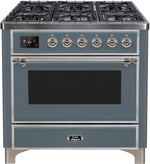 ILVE Majestic II 36" Dual Fuel Propane Gas Range in Blue Grey with Chrome Trim, UM09FDNS3BGCLP