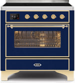 ILVE Majestic II 36" Induction Range with Element Stove and Electric Oven in Blue with Brass Trim, UMI09NS3MBG