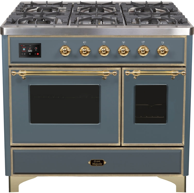 ILVE Majestic II 40" Dual Fuel Propane Gas Range in Blue Grey with Brass Trim, UMD10FDNS3BGGLP