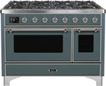 ILVE Majestic II 48" Dual Fuel Natural Gas Range in Blue Grey with Chrome Trim, UM12FDNS3BGC