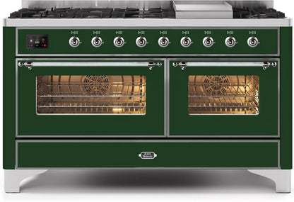 ILVE Majestic II 60" Dual Fuel Natural Gas Range in Emerald Green with Chrome Trim, UM15FDNS3EGC