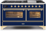ILVE Majestic II 60" Dual Fuel Propane Gas Range in Blue with Brass Trim, UM15FDNS3MBGLP