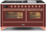 ILVE Majestic II 60" Dual Fuel Propane Gas Range in Burgundy with Copper Trim, UM15FDNS3BUPLP