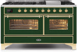 ILVE Majestic II 60" Dual Fuel Propane Gas Range in Emerald Green with Brass Trim, UM15FDNS3EGGLP