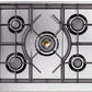 • Cooktop Features: Number of Burners - 5 // Griddle - No // French Top - No // Cast Iron Grates - Yes // Downdraft Ventilation - No // Control Type - Knobs