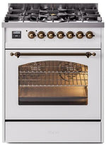 ILVE Nostalgie II 30" Dual Fuel Natural Gas Range in White with Bronze Trim, UP30NMPWHB