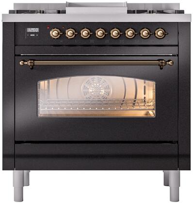 ILVE Nostalgie II 36" Dual Fuel Propane Gas Range in Glossy Black with Bronze Trim, UP36FNMPBKBLP