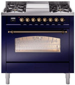 ILVE Nostalgie II 36" Dual Fuel Propane Gas Range in Blue with Bronze Trim, UP36FNMPMBBLP