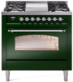 ILVE Nostalgie II 36" Dual Fuel Propane Gas Range in Emerald Green with Chrome Trim, UP36FNMPEGCLP