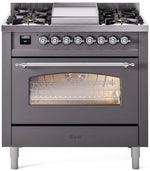 ILVE Nostalgie II 36" Dual Fuel Propane Gas Range in Matte Graphite with Chrome Trim, UP36FNMPMGCLP