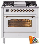 ILVE Nostalgie II 36" Dual Fuel Propane Gas Range in RAL Custom Color with Bronze Trim, UP36FNMPRABLP