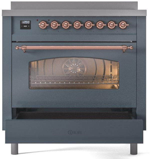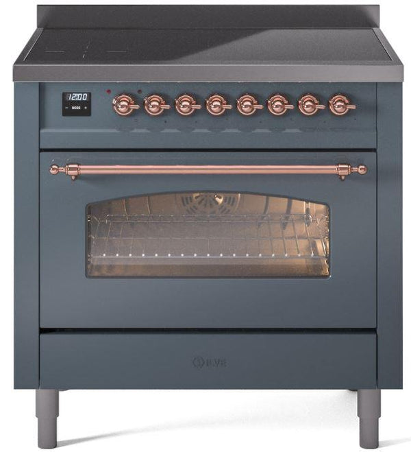 ILVE Nostalgie II 36" Induction Range with Element Stove and Electric Oven in Blue Grey with Copper Trim, UPI366NMPBGP