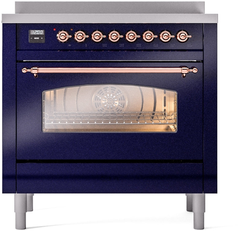 ILVE Nostalgie II 36" Induction Range with Element Stove and Electric Oven in Blue with Copper Trim, UPI366NMPMBP
