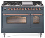 ILVE Nostalgie II 48" Dual Fuel Natural Gas Range in Blue Grey with Copper Trim, UP48FNMPBGP