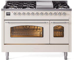 ILVE Nostalgie II 48" Dual Fuel Propane Gas Range in Antique White with Chrome Trim, UP48FNMPAWCLP