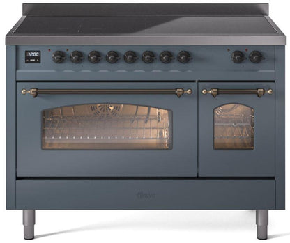 ILVE Nostalgie II 48" Induction Range with Element Stove and Electric Oven in Blue Grey with Bronze Trim, UPI486NMPBGB