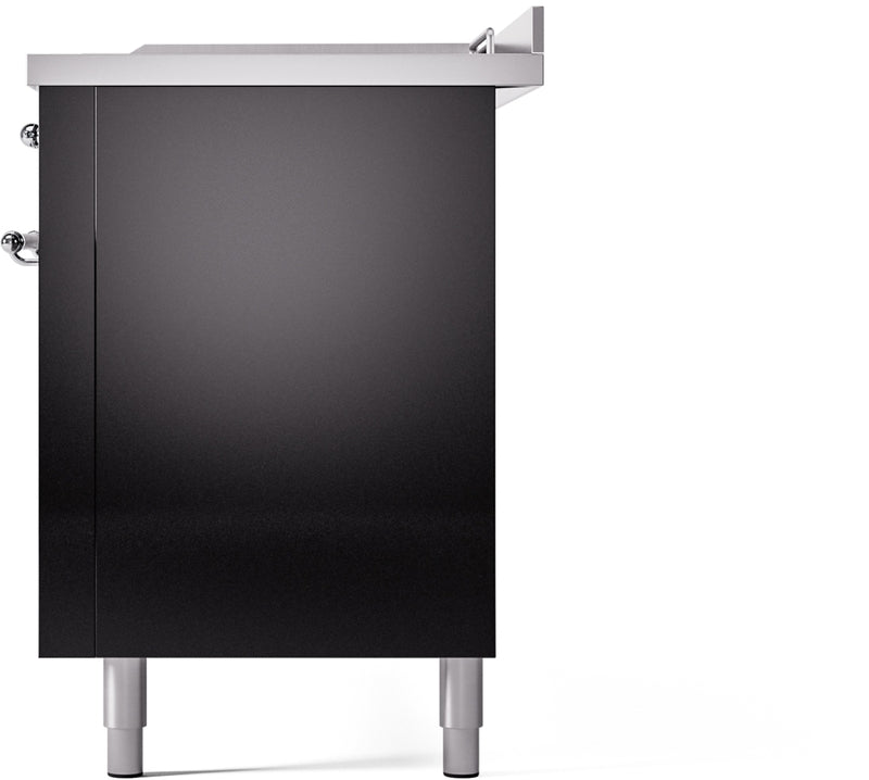ILVE Nostalgie II 60" Dual Fuel Natural Gas Range in Glossy Black with Chrome Trim, UP60FSNMPBKC
