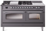 ILVE Nostalgie II 60" Dual Fuel Natural Gas Range in Matte Graphite with Chrome Trim, UP60FSNMPMGC