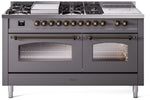 ILVE Nostalgie II 60" Dual Fuel Propane Gas Range in Matte Graphite with Bronze Trim, UP60FSNMPMGBLP