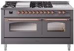 ILVE Nostalgie II 60" Dual Fuel Propane Gas Range in Matte Graphite with Copper Trim, UP60FSNMPMGPLP