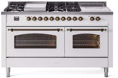 ILVE Nostalgie II 60" Dual Fuel Propane Gas Range in White with Bronze Trim, UP60FSNMPWHBLP
