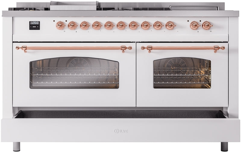 ILVE Nostalgie II 60" Dual Fuel Propane Gas Range in White with Copper Trim, UP60FSNMPWHPLP