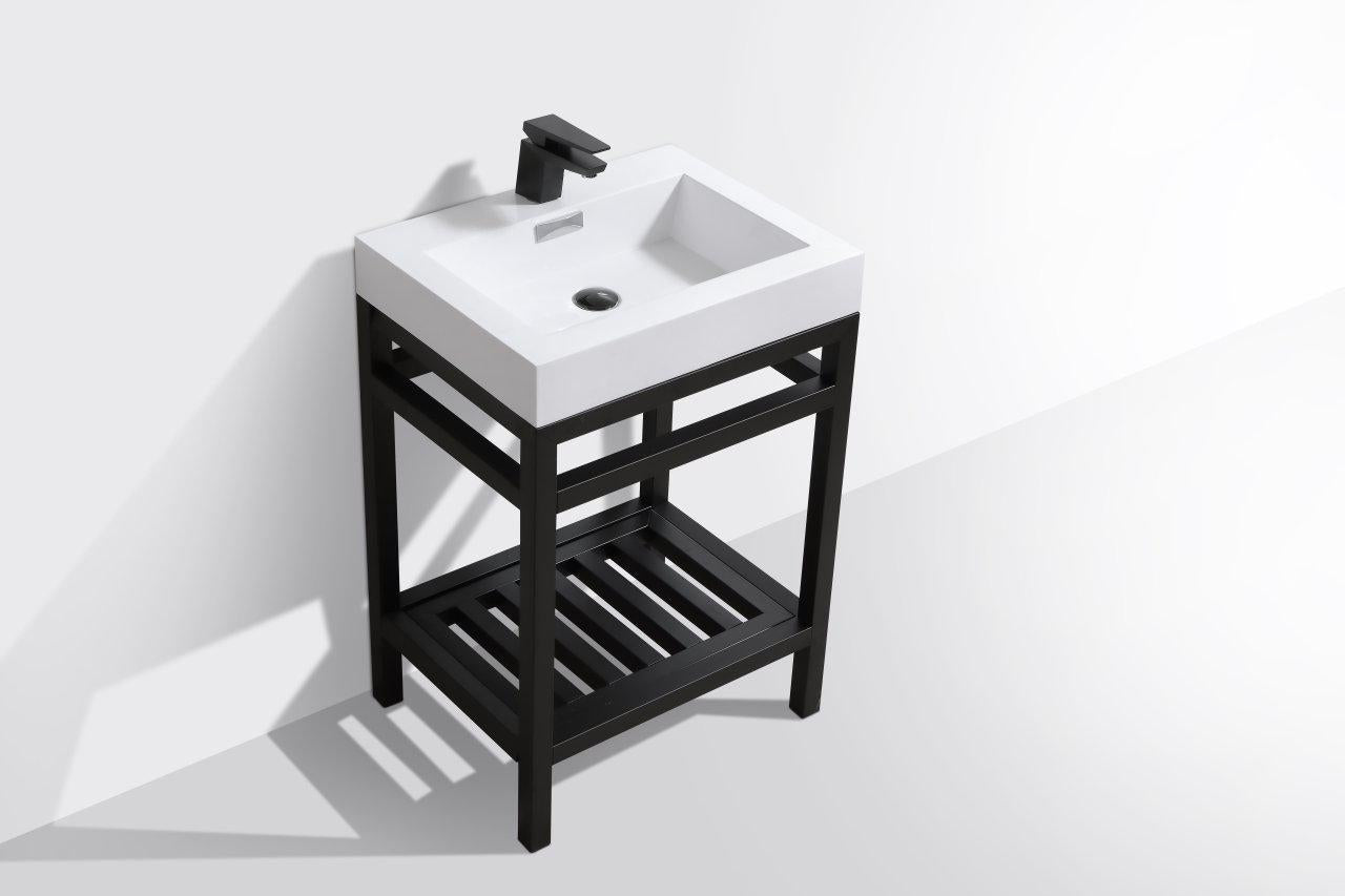 KubeBath Cisco 24 in. Stainless Steel Console with Acrylic Sink - Matte Black, AC24-BK