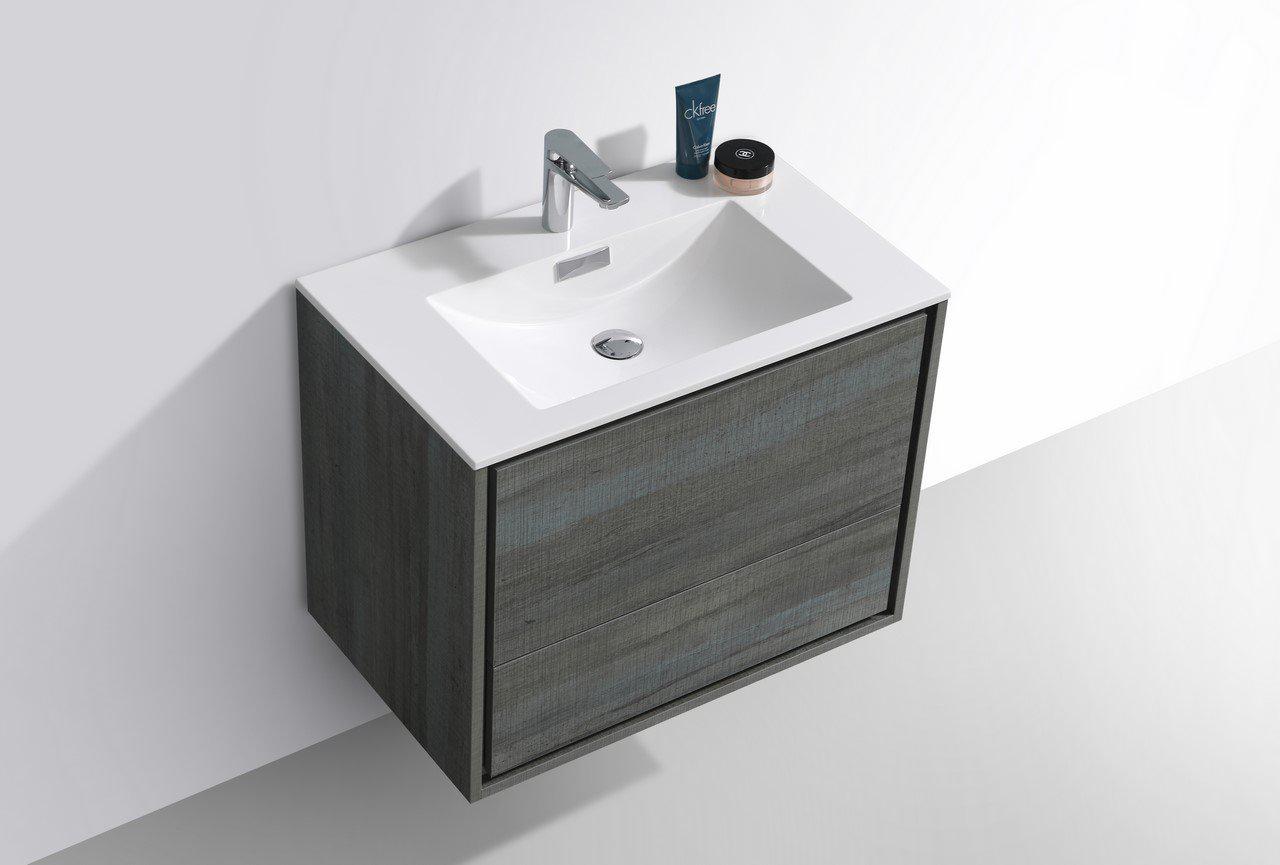 KubeBath De Lusso 30 in. Wall Mount Modern Bathroom Vanity - Ocean Gray, DL30-BE