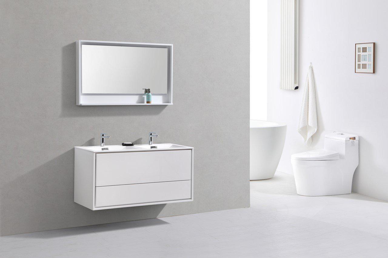 Kube Bath De Lusso 48 in. Double Sink Wall Mount Modern Bathroom Vanity - High Glossy White, DL48D-GW