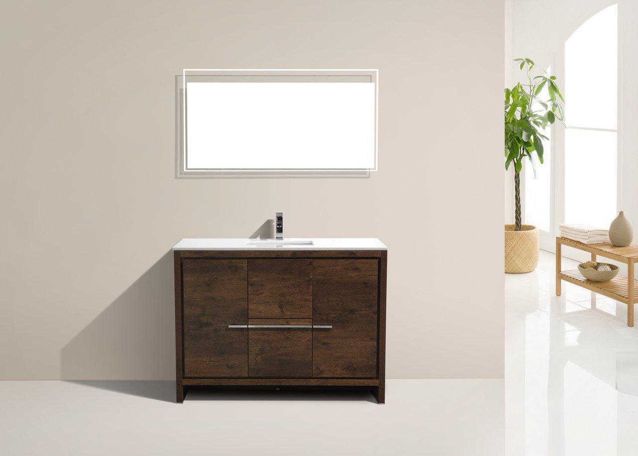 KubeBath Dolce 48 in. Rose Wood Modern Bathroom Vanity with White Quartz Counter-Top, AD648SRW