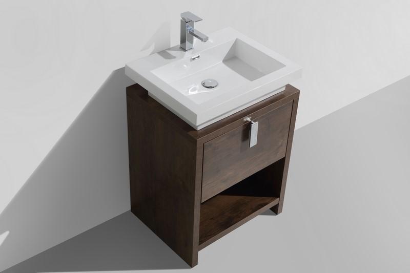 KubeBath Levi 24 in. Modern Bathroom Vanity w/ Cubby Hole - Rose Wood, L600RW