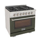 Kucht Professional 36" 5.2 cu. ft. Propane Gas Range in Olive Green with True Simmer Burners, KFX3600X/LP-G