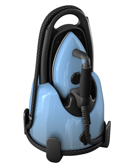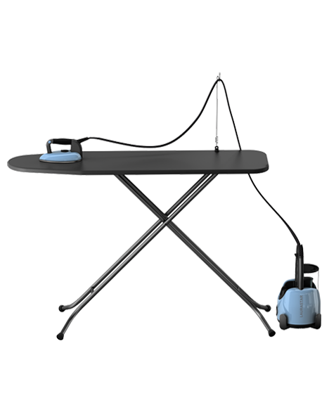 • Easily iron on a traditional board or steam fabrics directly on a hanger.
