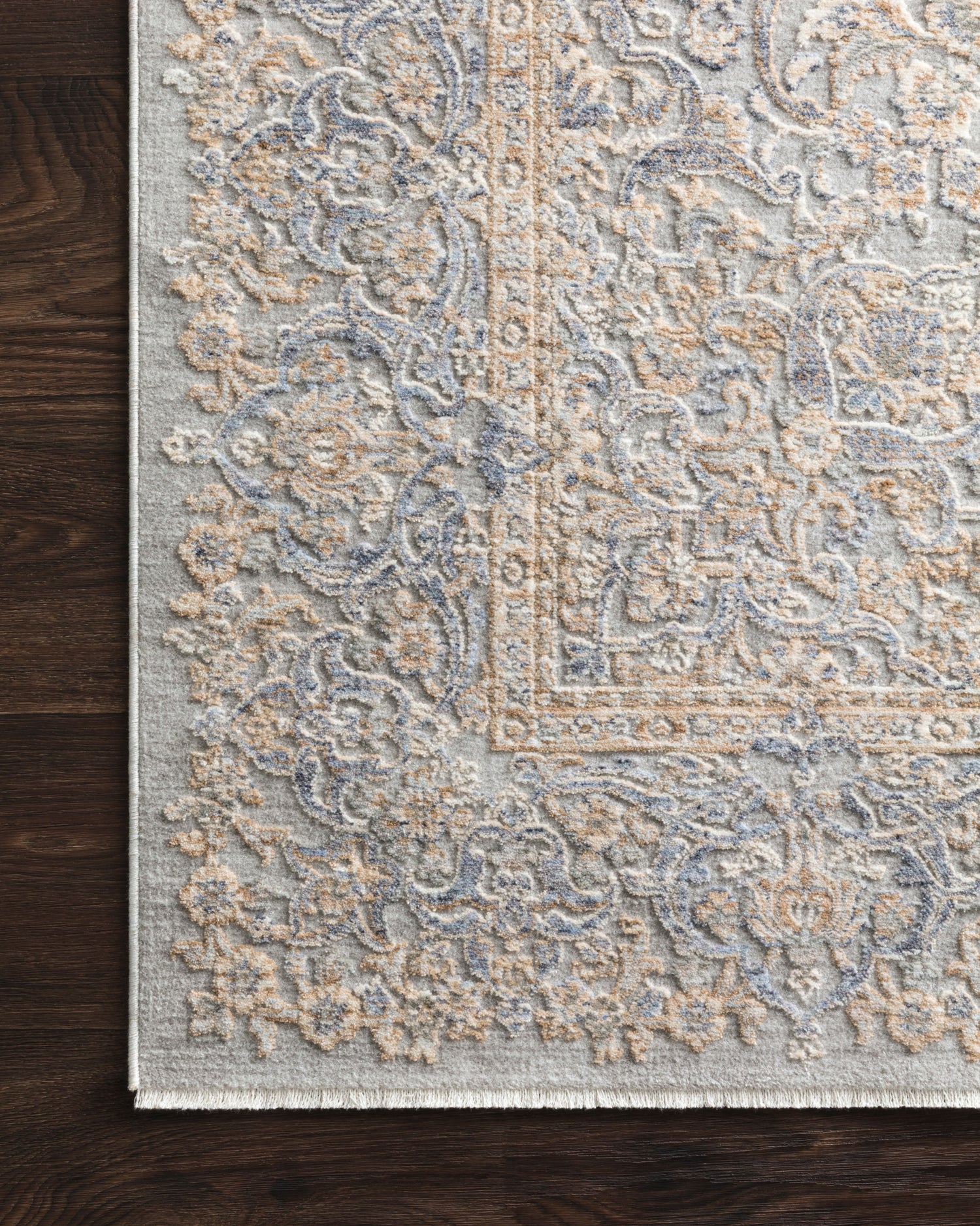 • Calming blues and sophisticated neutral tones combine to create an enchanting rug that will make your favorite living spaces even more pleasing to the eye.