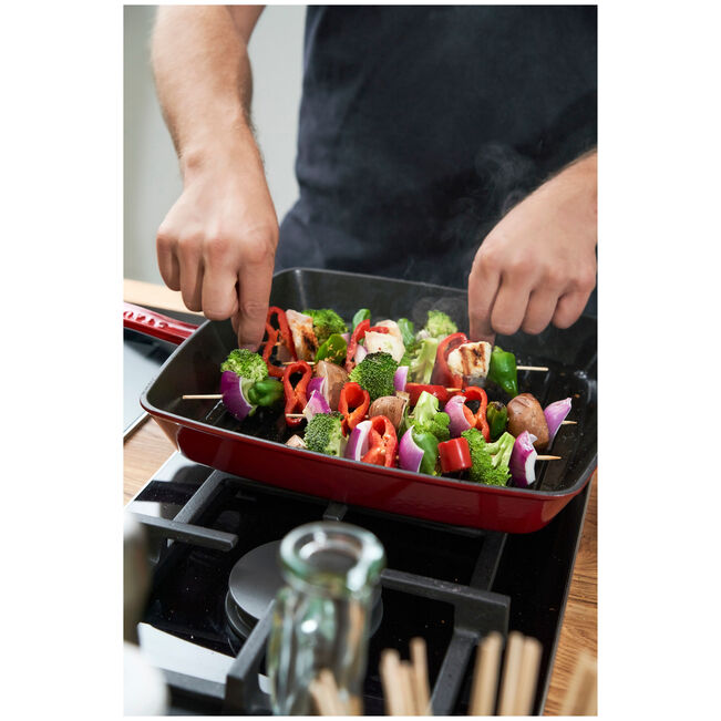 Staub Cast Iron 12-inch Square Grill Pan - Grenadine