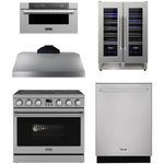 THOR Contemporary Package - 36" Electric Range, Range Hood, Dishwasher, Microwave and Wine Cooler, AP-ARE36-C114