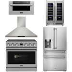 THOR Contemporary Package - 36" Electric Range, Range Hood, Refrigerator, Microwave and Wine Cooler, AP-ARE36-C118