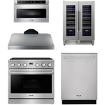 THOR Contemporary Package - 36" Gas Range, Range Hood, Dishwasher, Microwave and Wine Cooler, AP-ARG36LP-B113