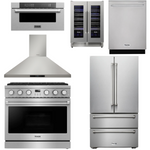 THOR Contemporary Package - 36" Gas Range, Range Hood, Refrigerator, Dishwasher, Microwave and Wine Cooler, AP-ARG36-A134