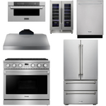 THOR Contemporary Package - 36" Gas Range, Range Hood, Refrigerator, Dishwasher, Microwave and Wine Cooler, AP-ARG36LP-B142