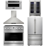 THOR Contemporary Package - 36" Gas Range, Range Hood, Refrigerator, Microwave and Wine Cooler, AP-ARG36LP-B116